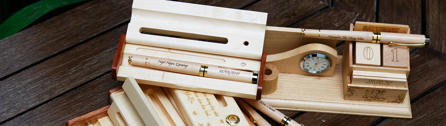 Quà tặng lịch gỗ để bàn, bút gỗ khắc chữ giá tốt được bán ở hà nội