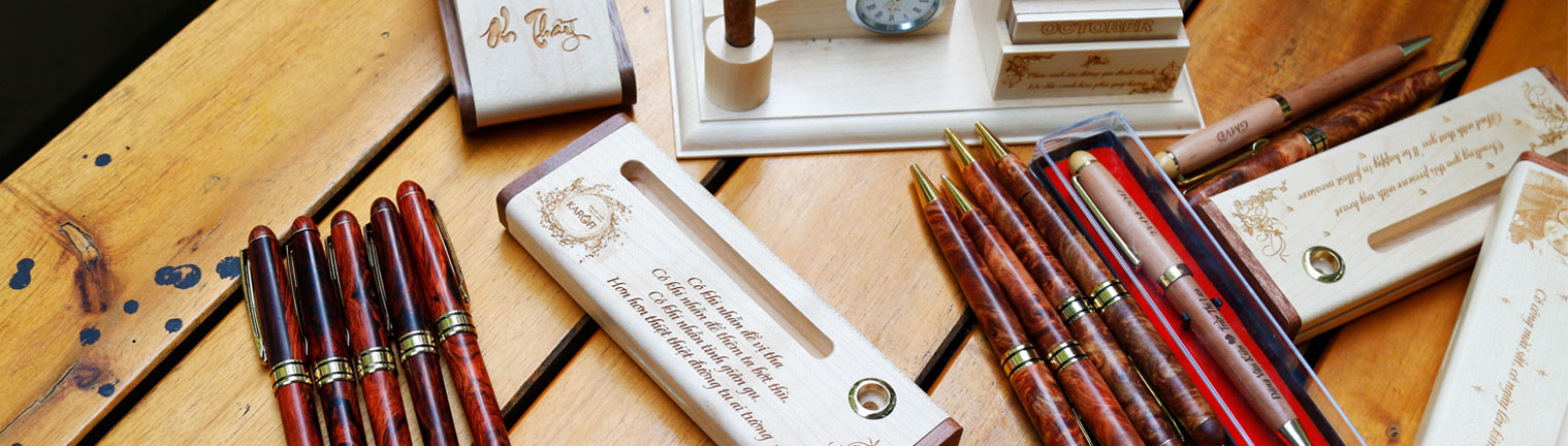 Bút gỗ khắc chữ khắc được nội dung lên sản phẩm với hai loại là bút bi nước và bút bi xoay . Tùy thuộc vào nhu cầu sử dụng của mọi người để chọn cho mình chiếc bút phù hợp. Ngòi bút viết trơn, đều mực,